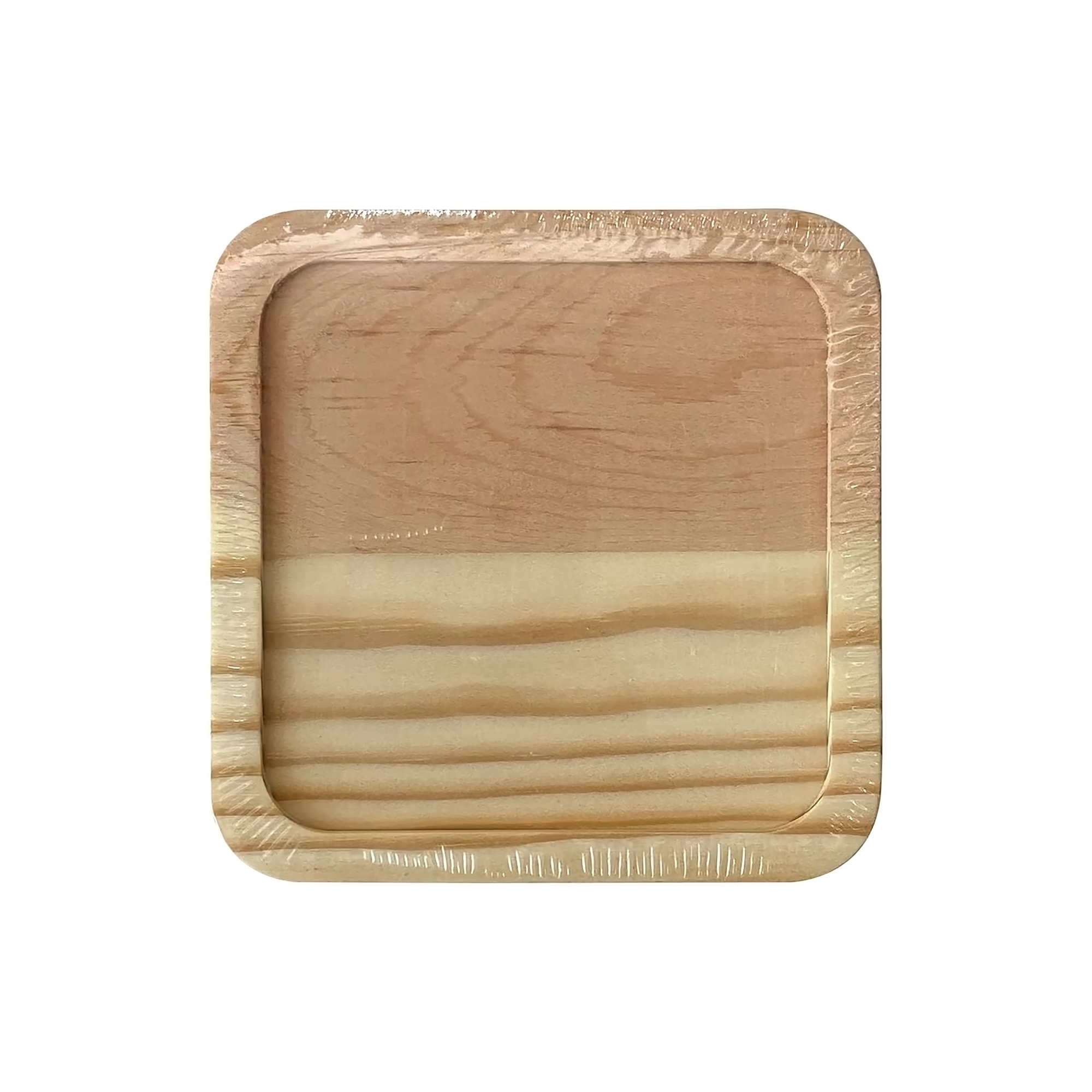 - The set includes 4 square pinewood coasters—perfect for protecting tabletops in style.
