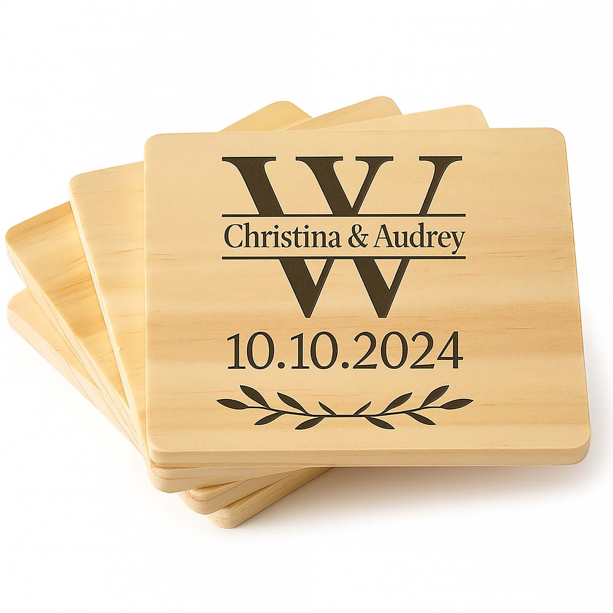 Type your custom message after pressing the customize tool: add names, favorite quotes, or special dates. We’ll engrave it with precision to make sure it’s perfectly showcased on your coasters.