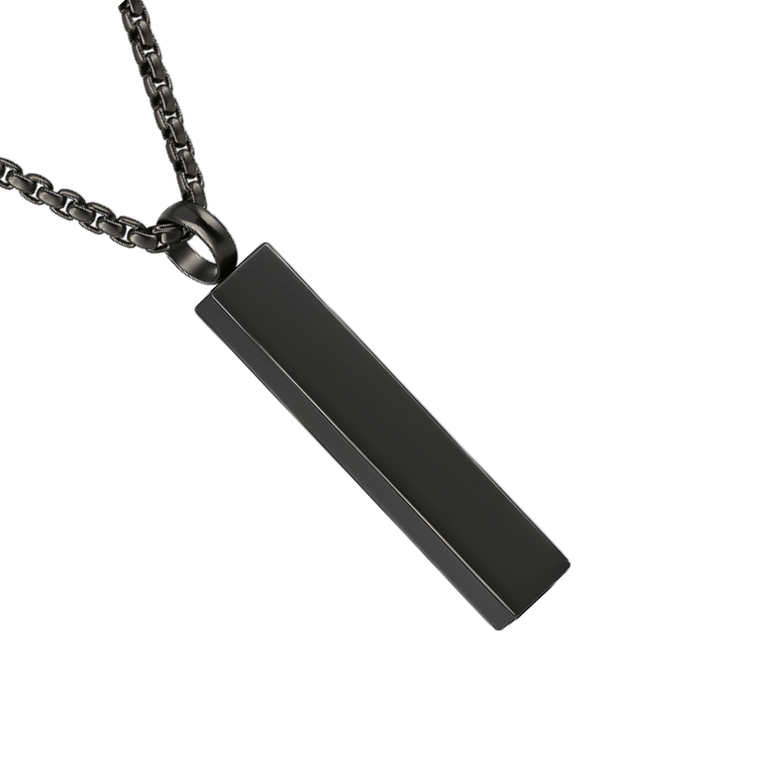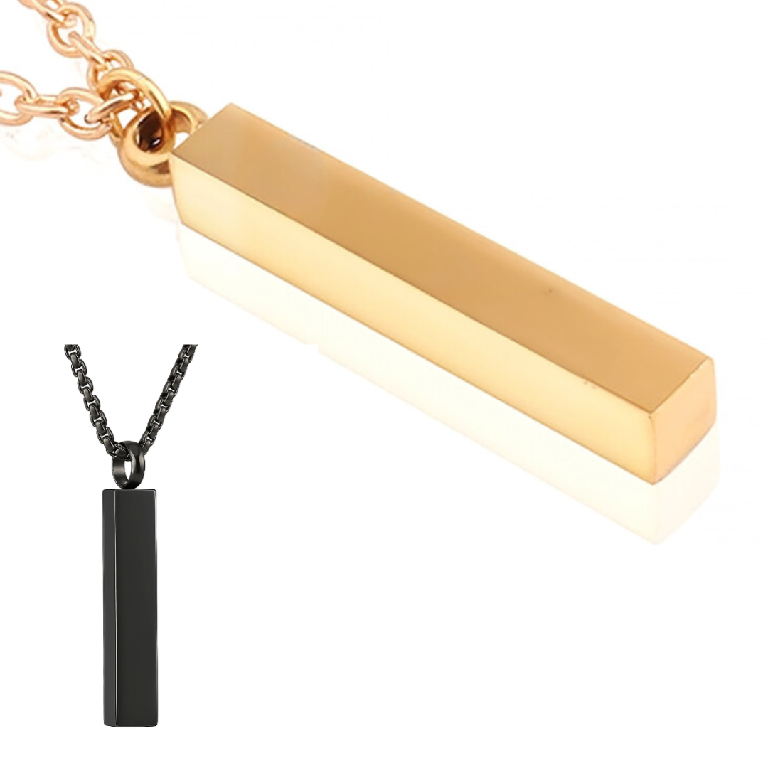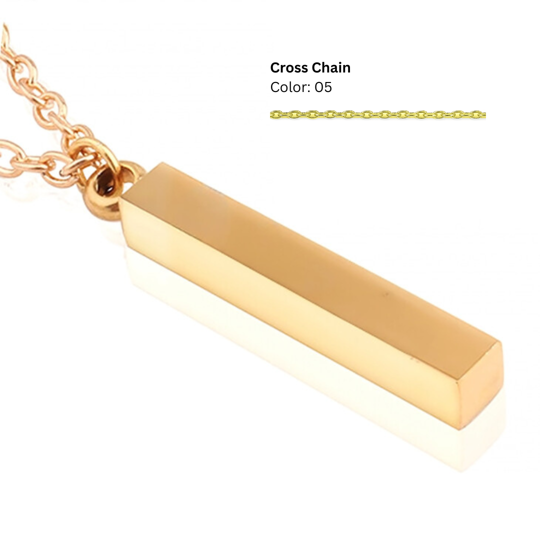 - Design: Bar necklace with a clip clasp and engraved customization
